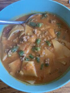 - When there is about 5 minutes left in hour 30 minutes simmer add your tofu to the broth to cook.